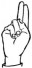 На ћирилици написано АЊА КЛИНЦОВ састоји се из 10 слова [?]. Исписано ћириличном једноручном азбуком за глувонеме: